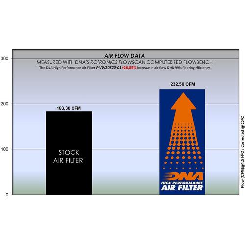- VOLKSWAGEN stock filter’s flow: 183.30 CFM (Cubic feet per minute) @1,5”H2O corrected @ 25degrees Celsius